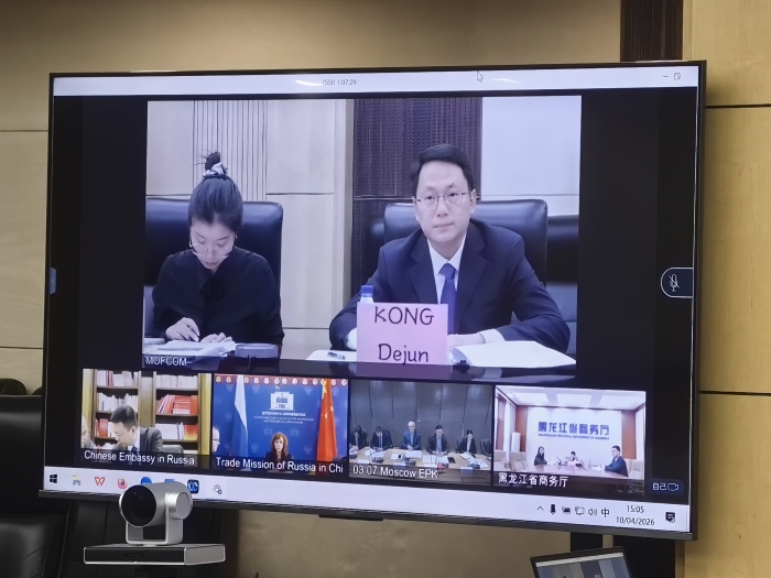 2026年4月10日,商务部服务贸易和商贸服务业司司长孔德军与俄罗斯经济发展部双边合作司司长卡尔梅切克通过视频连线方式共同主持召开中俄服贸工作组第六次会议,会议就双边服务贸易领域合作进行了深入交流和磋商。